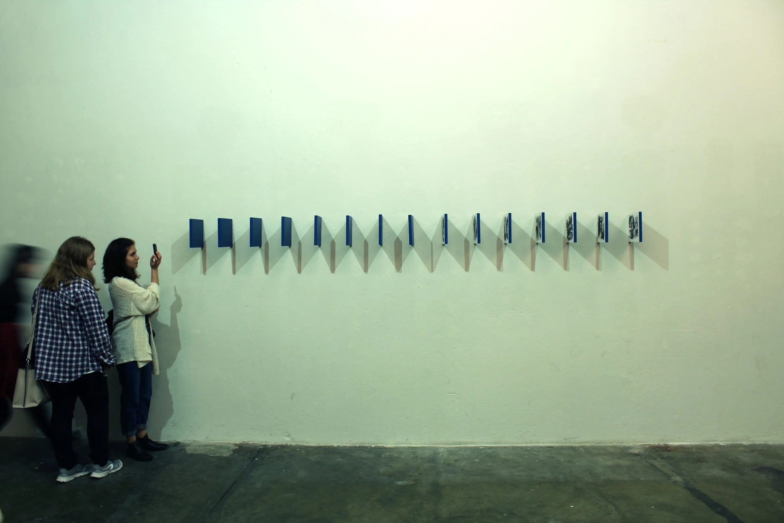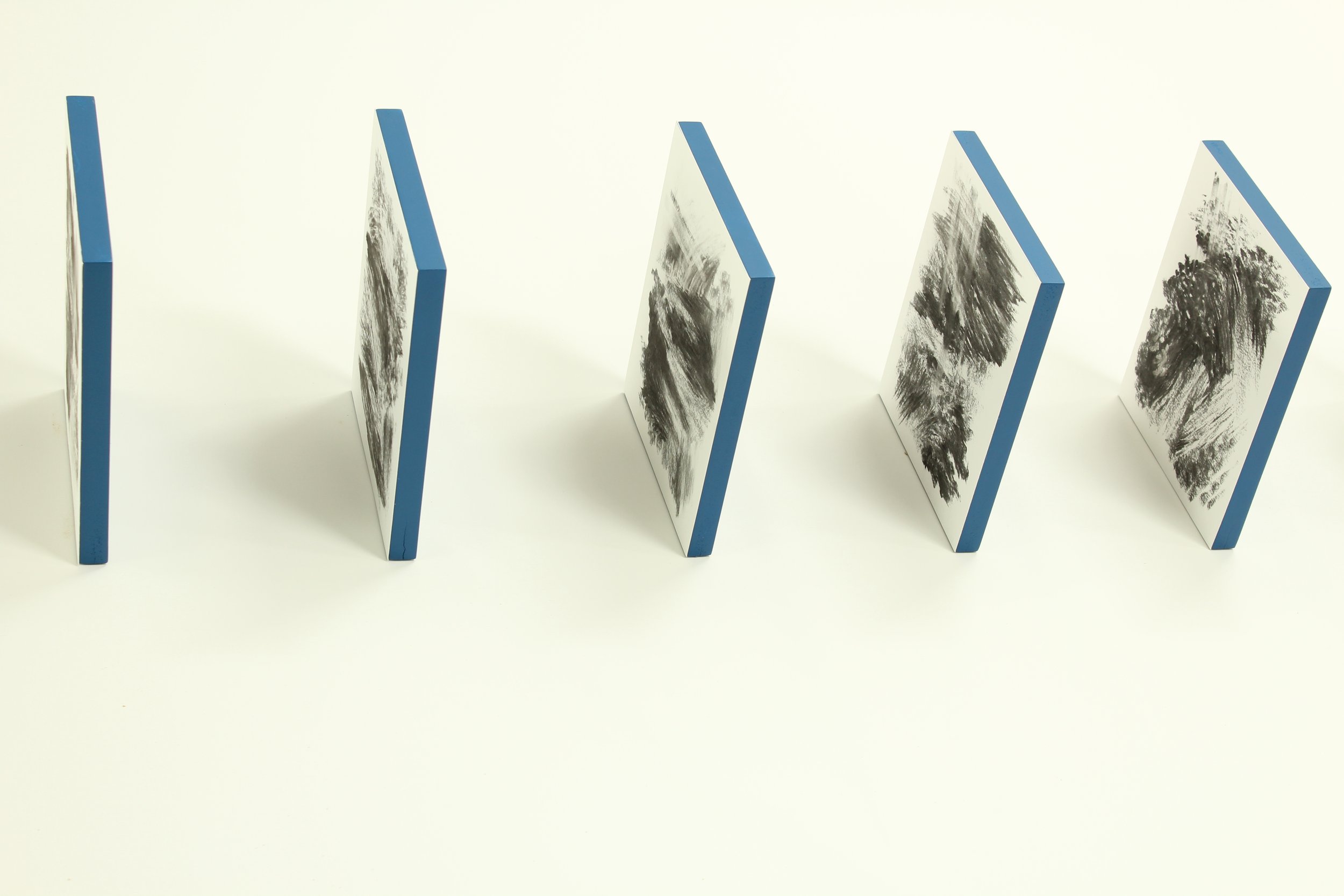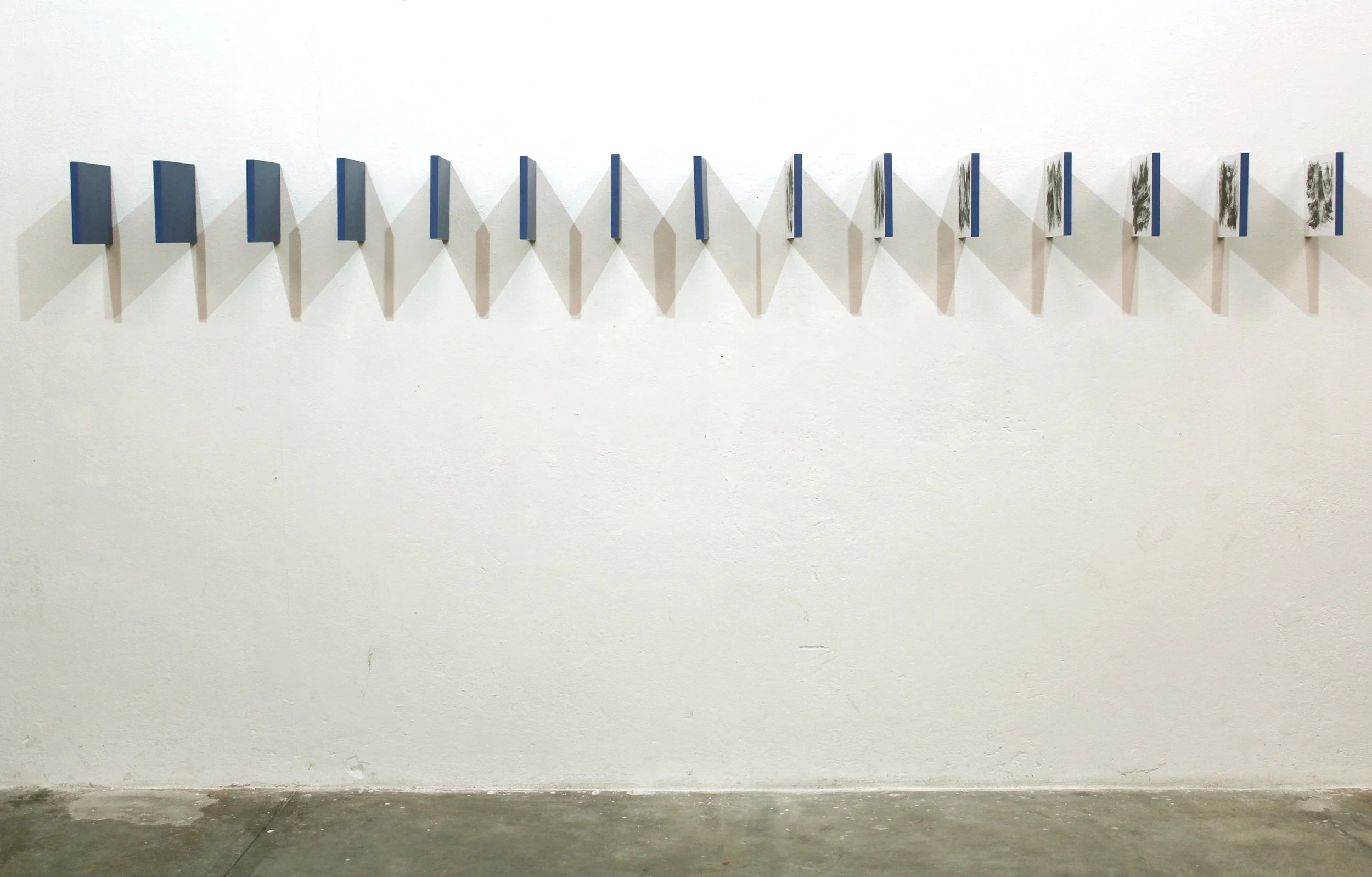 Horizonte, 2017, carvão vegetal sobre papel sobre mdf e tinta acrílica, 20,3 x 310 x 25,4 cm
